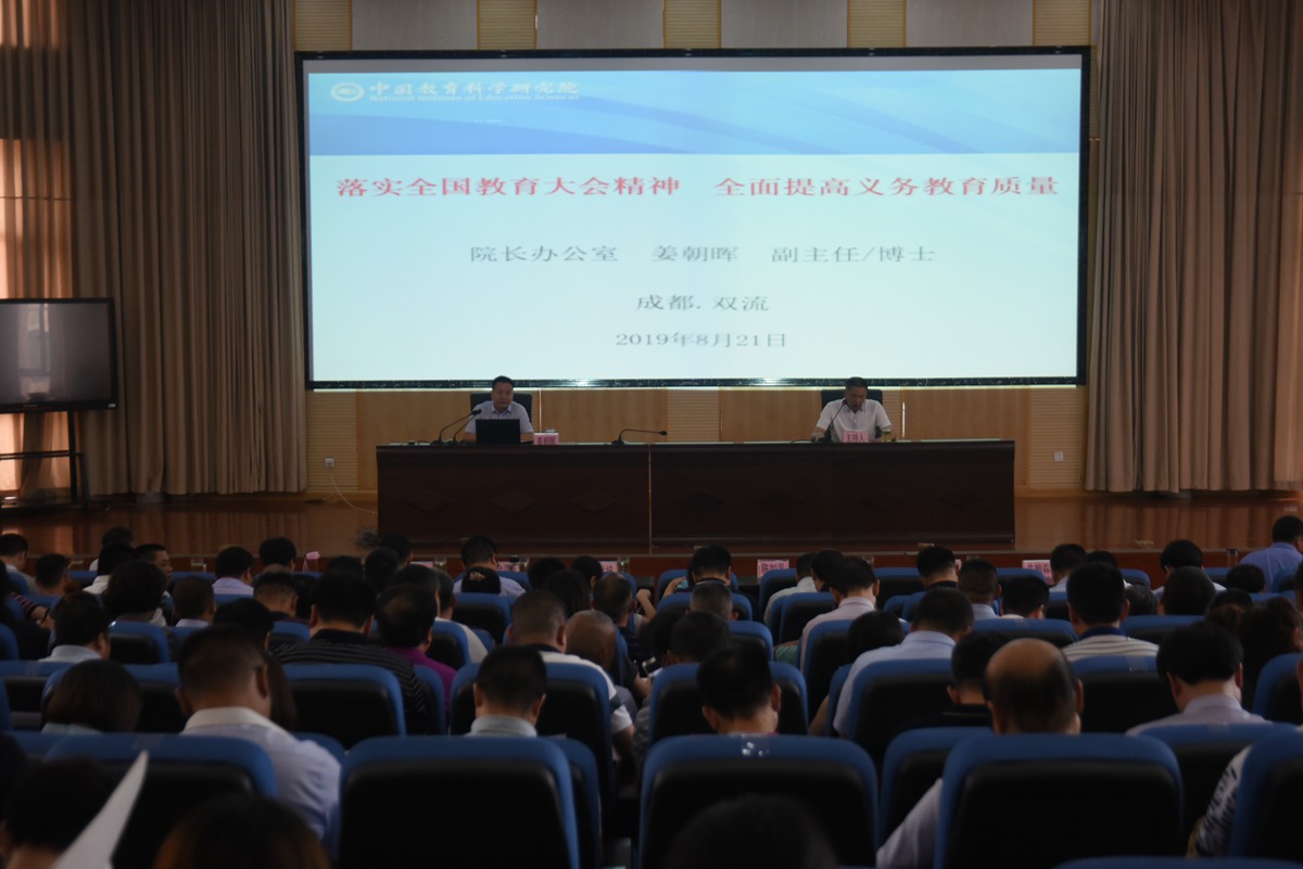 8月21日下午,中国教育科学研究院院办副主任姜朝辉作了题为《落实全国教育大会精神,全面提高义务教育质量》的主题报告。姜主任从全国教育大会召开背景和重大意义开始,总结全国教育大会的成果形式,对“全面提高义务教育质量”进行了政策解读,包括“九个坚持”、成果来源、核心要求等,并明确指出提高教育质量是实施科教兴国战略的必然选择,我们要着力培养担当民族复兴的时代新人。