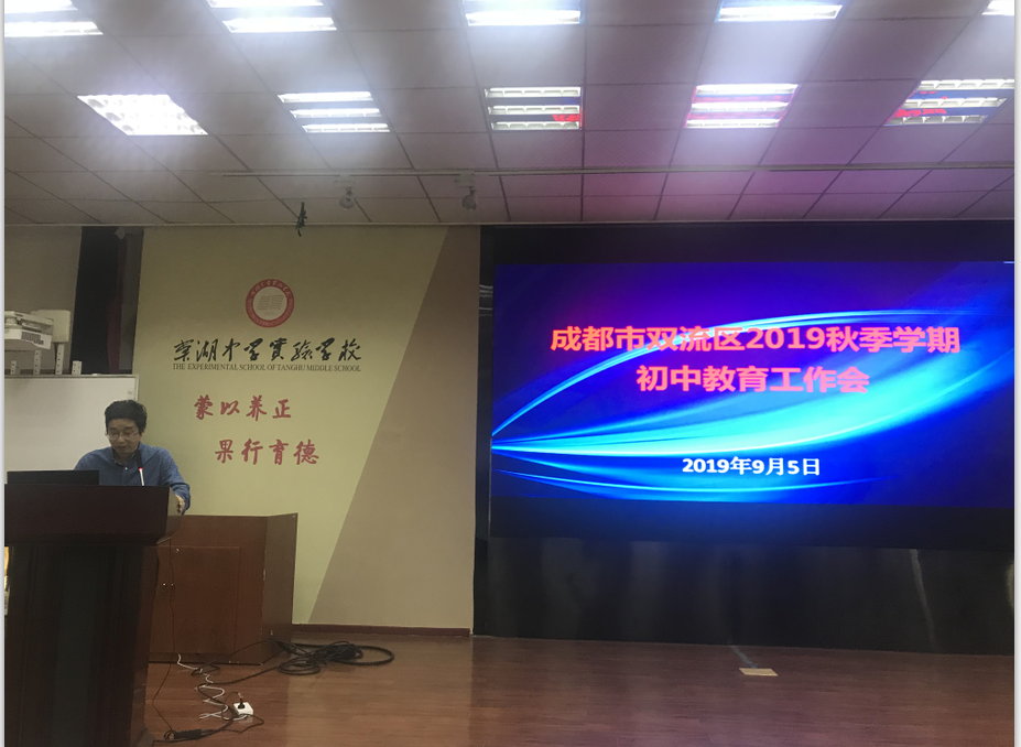 2019年9月5日下午,双流区2019秋季学期初中教育工作会在棠湖中学实验学校召开。各初中学校(含九年一贯制学校)校长、分管教学副校长或教导主任,高完中初中部负责人,区研培中心初中研培员,教育局相关科室人员参加了本次会议,双流区教育研究与教师培训中心副主任李久和主持了本次会议。