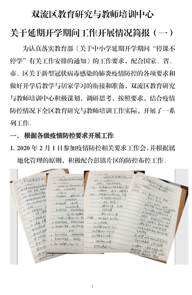 研培中心关于延期开学期间工作开展情况简报(一)