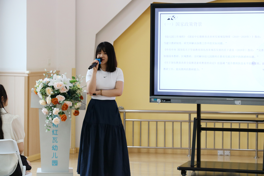 其次,以协和红瓦幼儿园、川大空港幼儿园、空港第一幼儿园、实验第三幼儿园、棠湖仁智幼儿园为代表的“教研龙门阵”项目组代表苏雅倩老师围绕“教研改革项目的背景、教研改革的破与立的思考、教研龙门阵的三个成果框架与困惑”等方面进行一一汇报。