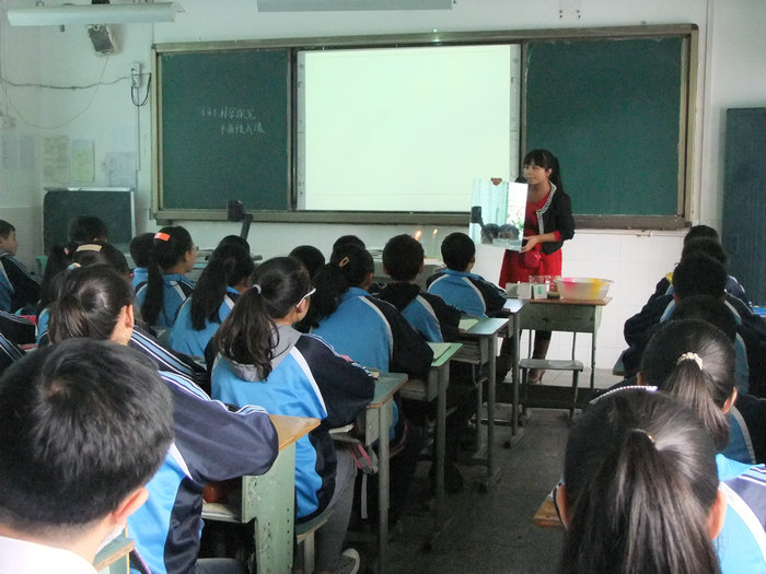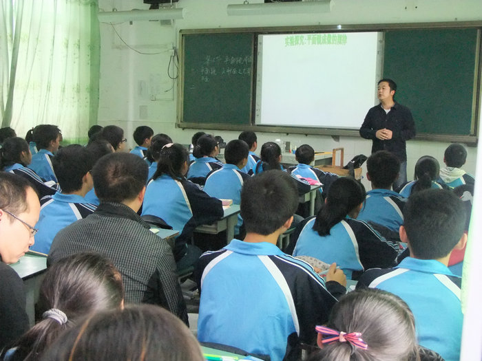 “同课异构” 先后由华阳二中刘波和黄水初中王超老师上课——《平面镜成像》。