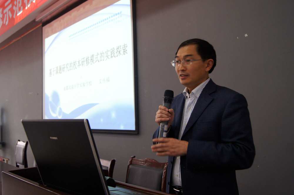 接着是学校代表交流学校的校本研修工作。双流实小教导主任闫瑾的发言主题是《致力校本研修,提升教师素养,践行幸福教育,凸显学校特色》。双流中学实验学校教科室主任文传福的发言主题为《基于课题研究的校本研修模式的实践探索》。