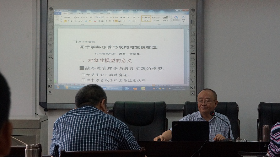8月31日上午,四川省教科所研究员,(教育部)全国教育科学规划,基础教育学科组专家周林先生做了题为《教研方式批判与课堂观察模型构建》的讲座。他先针对教研方式中普遍存在的蔑视“课堂事实”、疏离感性实践、对教材存在认识误区等问题进行了批判;然后,从时间计量、感性操作活动描述、单生应答人次统计与分析、游离╱投入状态观察、“课得”(一课一得)观察、小组合作状态观察、作品分析、课堂观察后的课堂还原8个方面构建了(对象性)课堂观察指标体系。