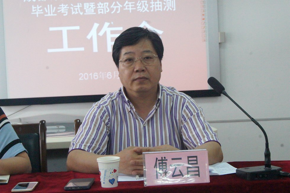 区教育研究与教师培训中心主任邱刚田对2016年小学生毕业考试暨部分年级抽测工作作了四点说明。一是小学毕业考试的命题依据是课标和教材,二是抽测的工作人员要本着客观、公平、公正的原则做好抽测工作,三是希望学校配合研培中心做好对学生和阅卷教师的信息采集工作,四是研培中心一定做好2016年小学生毕业考试暨部分年级抽测的相关工作。