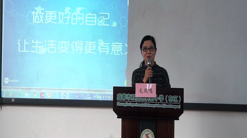宣讲活动由四川省优秀校长,双流实验小学校长毛凤鸣做了《做更好的自己,让生活变得有意义》的演讲。毛凤鸣校长回顾了自己从教三十余年的经历,一路走来,自己从一位民办代课教师成长为成都市十佳教坛名师,四川省优秀校长的经历。毛校长在演讲中告诉听众,要体会到做为教师的价值,感受到做为教师的幸福,就必须作到:1、因为热爱所以幸福。要悦纳“教师”这个职业、岗位,你才会幸福、快乐。2、因为感恩所以成长。只要心怀感恩,就会成长。3、因为担当所以付出。毛校长用自己的经历告诉我们:每一个人,只要你热爱教师这个职业,有一颗感恩的心,有担当、有付出,你终将收获信任,收获成长,收获快乐,收获幸福。