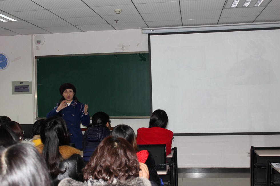 全新的一天在充实的学习中悄然流逝。2017年1月8日下午,来自西南大学外国语学院综合英语教研室主任、硕士生导师黄学军教授和老师们亲切愉悦的分享了题为《新课程理念下的初中英语听说教学的模式与实践》的精彩讲座。黄教授通过图片引入的方式为大家做了精彩而新颖的自我介绍,接着她对听说教学进行了系统的具体形象而不失幽默的专业讲授,通过具体实例展示,以初中英语有关动物的一节听说教学课堂展示,引导老师们积极参与讨论和具体实践操作,从而巧妙而自然的引出有关听说教学的专业理论,并且细化到有关听力教学的每一个具体环节。关注听力教学三个环节中教师和学生的不同角色分工及教师为学生学习所搭建的知识框架,教会学生在具体语境和句子中转换和猜测及理解生词,从而在对话中自然习得语言知识。