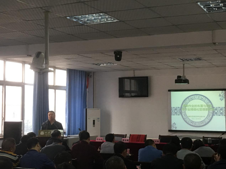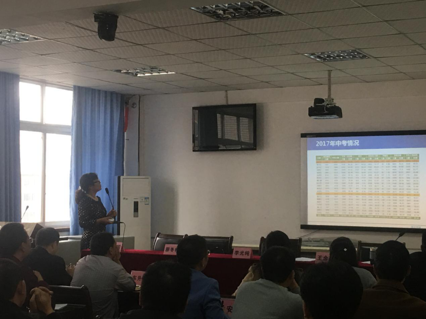区教育局中教科科长廖冬梅以《目标引领、精细管理、提升质量,为全面推进双流教育优质特色发展不懈努力》为题,对2017年中考情况作了仔细地分析,肯定了双流区中考成绩保持了高位求进的态势,并提出以后要对标发展、要以主城区区划的变化作为以后中考的新要求和新目标。并对课程建设,课堂建模,特色发展等方面提出了要求。