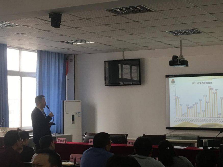 接着,区研培中心初中室主任匡世国以《把小事做精 把细节落实》为题,分析2016—2017学年度教学质量工作,尤其是针对八年级期末统测统阅成绩进行了详尽地分析。通报了上学期初中集体视导的情况,并针对视导中出现的问题和现象,就初中教育教学管理提出了中肯的建议。