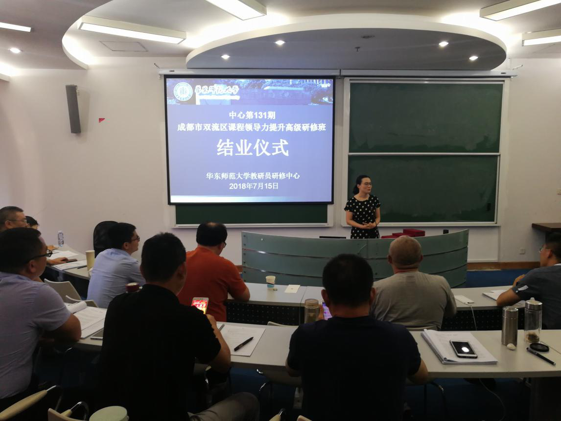 7月15日,2018年双流区学校课程领导力提升高级研修班在华东师范大学为期六天的集中研修接近尾声。下午4:30,在华东师范大学课程与教学研究所付黎黎老师的主持下,双流区研培中心邱刚田主任、华东师范大学课程与教学系周文叶副主任、双流区各中学副校长、教科室主任(副主任)、教研组长和研培中心中学各学科研培员一起参加了本次华东师范大学集中研修学习的研修小结会。