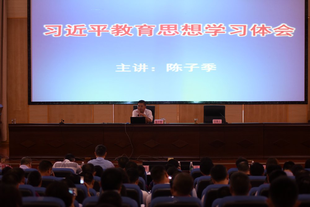 教育部教育发展研究中心主任陈子季作了《习近平教育思想学习体会》的专题报告。陈主任从习近平主席高度重视教育的具体事件和重要讲话入手,系统分析了习近平的教育思想,重点给大家介绍了培养什么样的人和如何培养人的相关内容。