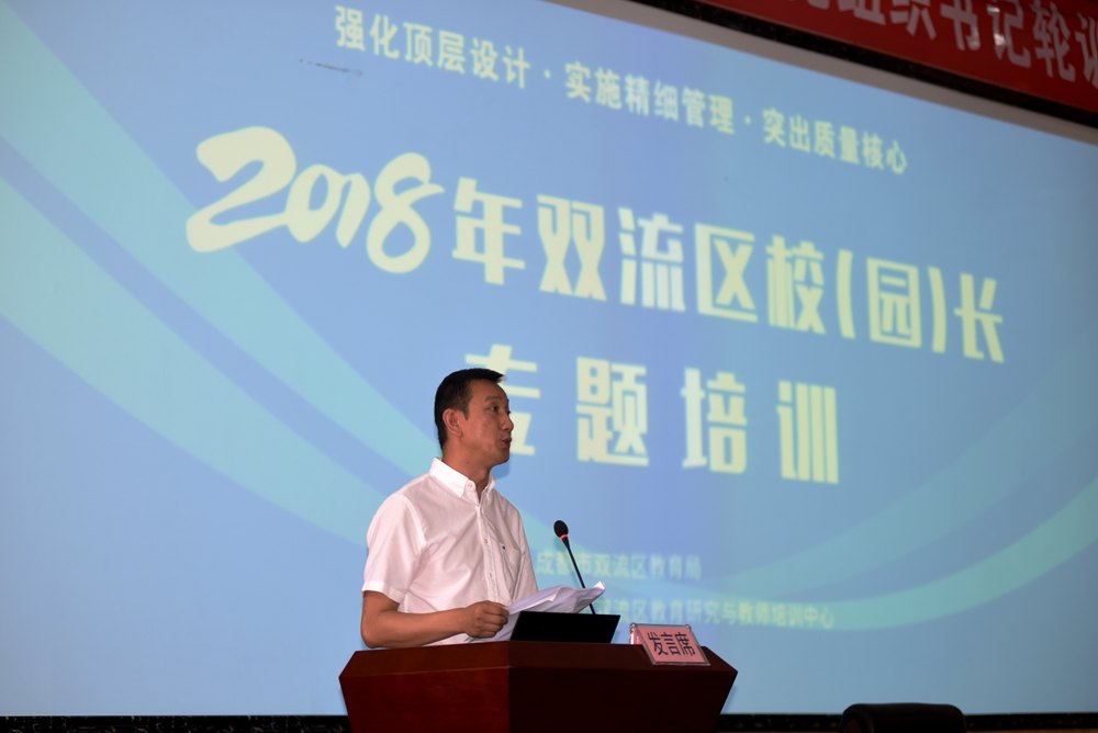 本次培训是为贯彻党的十九大和省市区党代会精神,落实《国家中长期教育改革和发展规划纲要》、《中共中央国务院关于全面深化新时代教师队伍建设改革的意见》、《教育部关于进一步加强中小学校长培训工作的意见》等文件要求,进一步深化区域教育综合改革,提高现代学校治理能力,培养造就一支专业化校(园)长队伍,推进区域教育现代化示范区建设,结合我区教育发展实际而精心举办的专题培训。相信广大参训学员定会将自己的所学所思积极运用到教育工作中去,以非常之干劲、百倍之努力,奋力开启双流教育高质量发展新篇章!