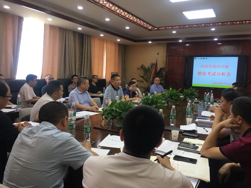 2018年7月18日下午2:30,“双流区高2016级摸底考试分析会”在双流中学德馨楼百度厅成功举行。双流区教育局党组书记、局长李光纯,教育局中教科科长廖冬梅,研培中心主任邱刚田,研培中心高中各学科教研员及各学校领导共38人参加了本次会议。