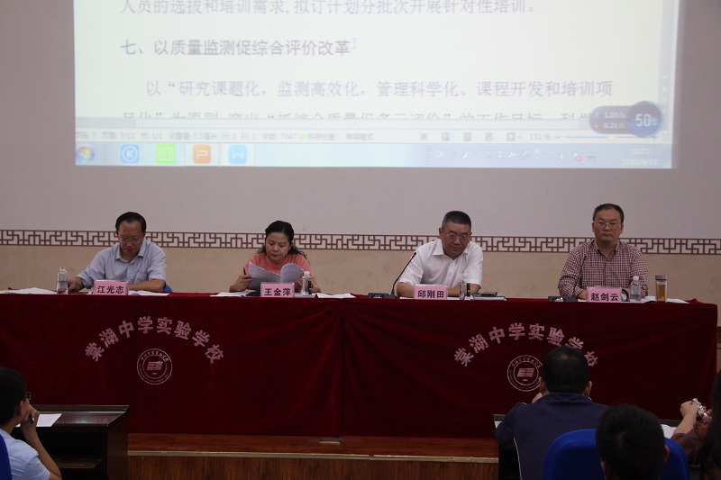 会议第一项议程是区研培中心邱刚田主任对全区2018—2019学年度教育研究与教师培训工作的工作思路和工作要点进行了解读。他提出2018-2019学年度区研培中心将以突出质量核心,提升区域品质为主题,围绕九大方面做好相关工作。一是以党建工作树师德师风师能。按照“抓学习,促规范,提内涵”的思路,努力打造一支品德高尚、爱岗敬业、业务精湛、乐于奉献的研培队伍。二是以理念引领促研培工作转型。充分落实立德树人-教书育人的理念,引导教师从“学科教学”转向“学科教育”的转变;坚持学生发展核心素养的理念,培养学生具备适应终身发展和社会发展需要的必备品格和关键能力,指导教师由关注“三维目标”向“核心素养”学科育人目标的转变;树立“互联网+教育”的理念,促进教育信息化与教育教学改革的适度融合和创新,促进研究从关注基于经验到基于实证、大数据的转变。三是以规范课程建设促内涵发展。着力强化国家课程校本化实施,开展全区国家课程校本化实施的展评活动,开展基于标准的“教—学—评一致性”的教学实践;继续深入开展“4+X”课程建设工作。四是以立足课堂促教育教学变革。严格执行教学常规“六认真”; 在教师、学生、教材、环境、技术条件下,构建有效的课堂;利用信息技术改变课堂教学形态,提高课堂教学效益。五是以课题研究促科研能力提升。重点推进教育部管办评课题研究,确定改革试点项目学校,先行先试,总结梳理管、办、评改革经验;借力借智教育部教育发展研究中心、四川省教育发展研究中心专家对区域科研工作的指导和引领,积极推进四川省教育体制机制改革试点工作。六是以完善师培体系促进教师专业发展。进一步健全完善“一中心、两全员、四融合、四主系、五平台”的“12445”区域教师专业发展运行体系;进一步开发名师资源,发挥名优教师领航作用;进一步加强督查指导,提升校本研修工作的实效性;加强统筹规划,推动各级各类教师培训工作有序开展;七是以质量监测促综合评价改革。科学开展质量监测工作,努力构建区域监测体系,利用“互联网+监测”建立全区学生成绩数据库系统全面精准的分析跟踪管理、服务学生,促进学生个性发展,提供适合的教育。八是以队伍建设促咨询服务水平。坚持研培队伍的业务素质提升,坚持深耕专业服务学校和教师,坚持平台搭建助力教师专业发展,坚持开放学术窗口做好决策咨询。九是以质量核心促学有优教品质。促进义务段教育质量优质均衡发展,高中阶段教育质量优质特色发展,“共建区域教育现代化示范区”提升品质,丰富双流教育内涵、提升双流教育品质,努力办人民满意的教育。