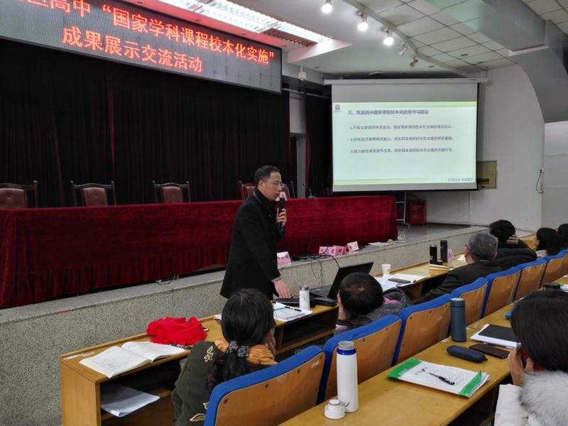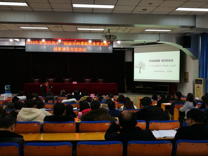 将目光聚集在国家学科课程上,保证国家课程的最优化实施,是学校课程教学改革的核心任务。而国家学科课程最优化实施的唯一途径就是国家学科课程的校本化。在深化教育体制改革的大背景下,双流区各学校坚持因校制宜、因地制宜的方针,既不因循守旧,也不因新冒进,坚持有条不紊地探索国家学科课程校本化的道路与经验,已经取得了一系列教育教学成果。国家课程校本化实施永远在路上,我们应当努力让国家课程更好地服务于师生的成长。而此次的展示活动既有利于展示双流区高中段各学校在实施国家学科课程校本化方面的经验及成果,也有利于促进各学校互通有无、共享经验,最终促进双流教育再上一个新台阶。