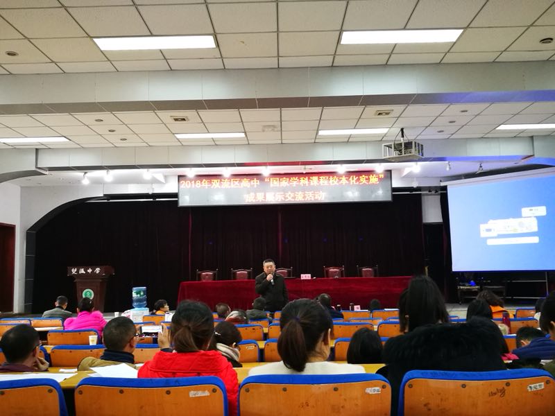2018年12月18日,双流区高中学校“国家学科课程校本化实施”成果现场展示活动在双流中学召开。成都市教科院高中室王秉蓉主任,双流区教育局中教科廖冬梅科长,双流区研培中心邱刚田主任,双流区研培中心高中室刘光文主任及各位高中研培员全程参与了本次活动。各校分管教学的副校长、教务主任,及英语、化学、政治教研组长备课组长均到场参会,部分学校校长也亲自前来,积极关注本次活动。