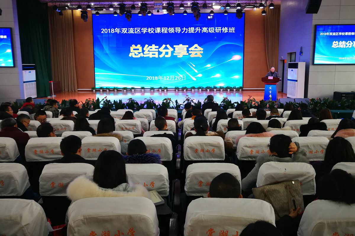 2018年12月26日下午2时30分,双流区“2018年中学课程领导力提升研修班培训总结分享会”在棠湖小学多功能厅顺利召开。华东师范大学课程与教学研究所研究员、全国教研员研修中心特聘专家博士、教授、博士生导师朱伟强,双流区教育研究与教师培训中心主任邱刚田出席了此次活动。参会人员有2018年双流区学校课程领导力提升高级研修班全体学员,全区各中学、九年一贯制学校分管教学副校长,教导主任及学科教研组长代表。会议由区研培中心副主任赵剑云主持。