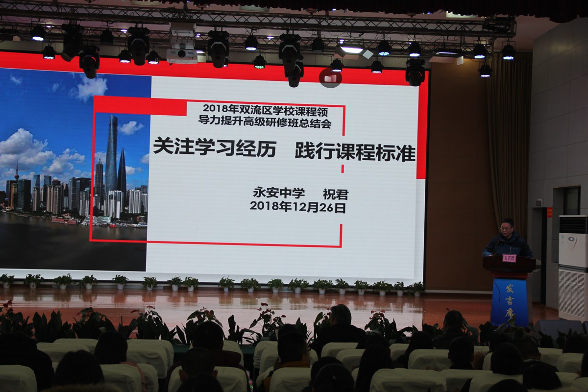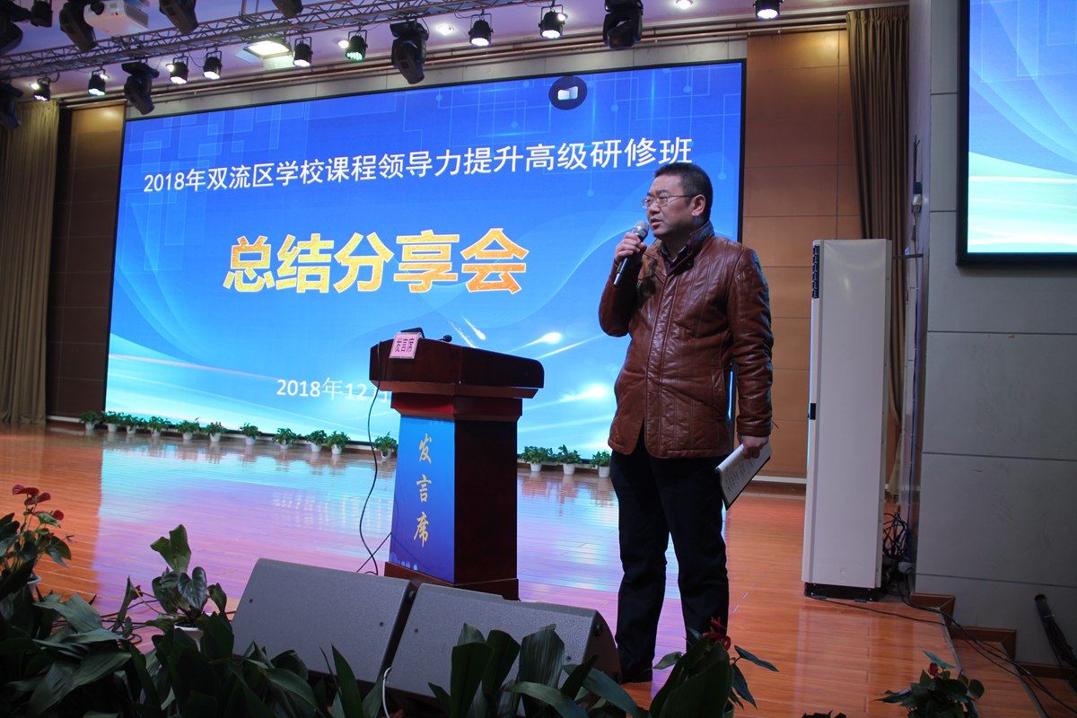 分享会最后,区研培中心主任邱刚田代表双流区全体教师再次向朱教授对双流教育的关心与指导表示感谢,并对与会者提出了要求:学员要作课程改革的践行者、先行者;学校要作课程改革的组织者、领导者;研培中心的研培员要作课程改革的研究者、引领者,更要将理论“落地”,引领双流教育前行。他希望,通过华东师大的指导和全体双流教育人的努力,我区在深化课程改革和课程评价方面能做得更好。