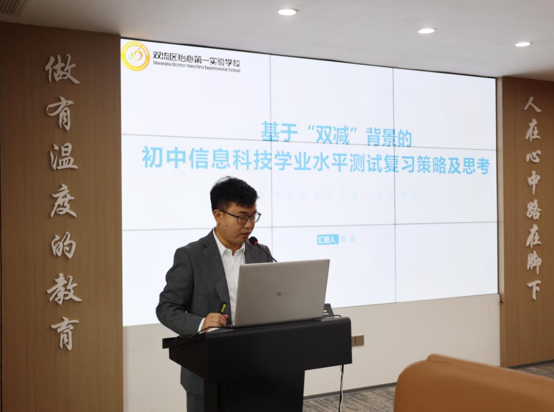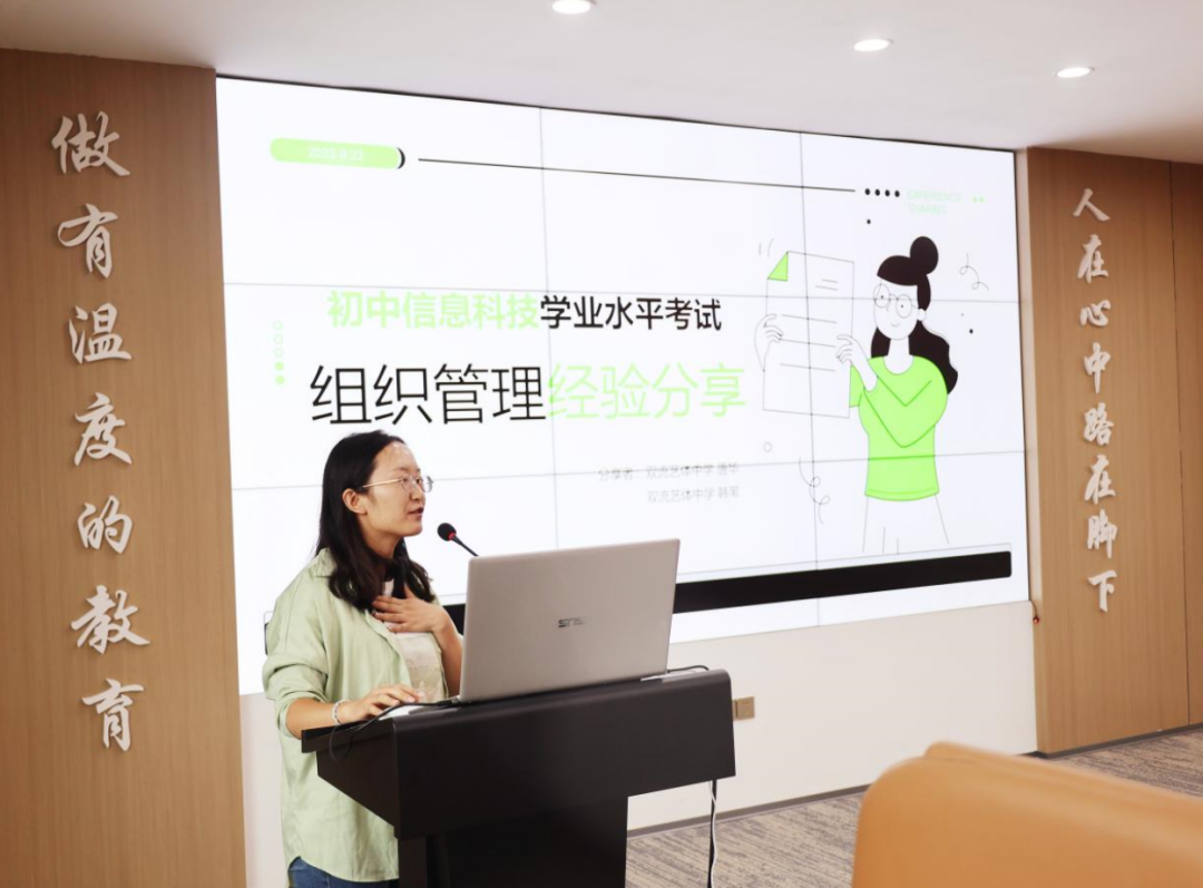 最后,双流艺体中学的唐华老师做了主题为《初中信息科技学业水平考试组织管理经验分享》的专题报告。唐华老师从考前培训与准备、考试组织与管理、总结与反思、未来工作规划四个方面对我们在备考和考试期间考试软件安装过程中可能出现的问题做了详细分类汇总,同时对考试的组织和管理也发表了自己独特的见解和落实方案,为全区的信息科技学业水平考试组织与管理提供了极大的助力。