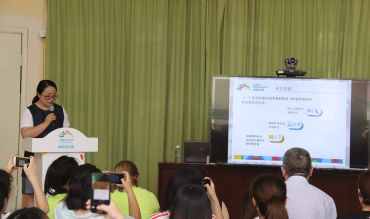 2019年6月20日上午,市级课题《利用本土特色资源构建园本沙石课程的实践研究》阶段展示活动在金桥幼儿园展开。