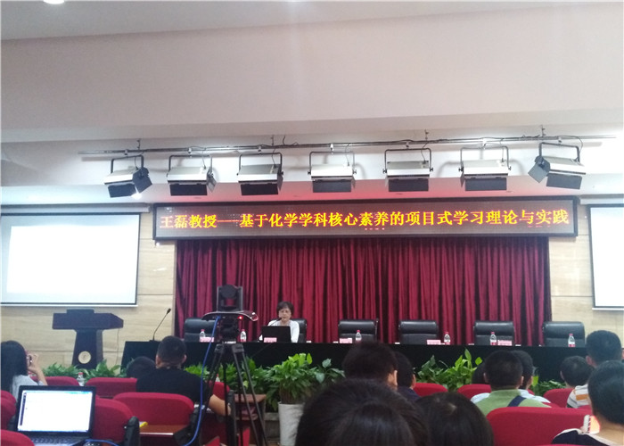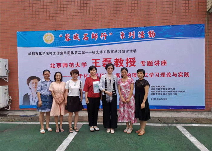 2019年6月26日下午,《初中化学项目式学习设计与实践》课题组成员参加了成都市化学名师工作室共同体在金牛区研培中心举行的“蓉城名师行”活动。北京师范大学化学系教授、中国化学项目式学习的领军人物王磊教授做了中学化学项目式学习专题讲座,杨光辉工作室的王雅敏老师和成都七中万达学校的邓诗丽老师分享了项目式学习案例。