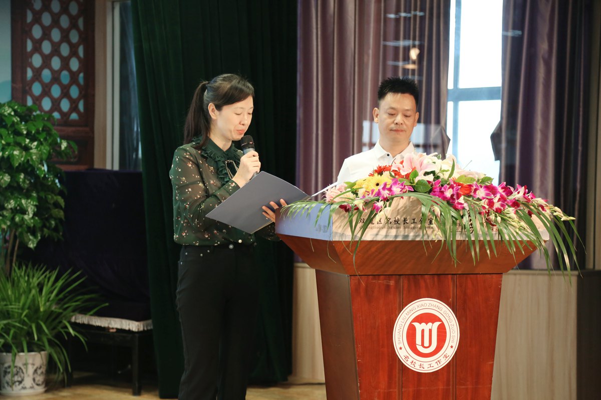 温文勤和谢萍莉以《课程建设,明辨笃行》为题,厘清课程建设的内涵和外延,分析优化课程建设体系的策略,并结合工作室研修成果剖析工作室学员所在学校“4+X”课程建设案例。