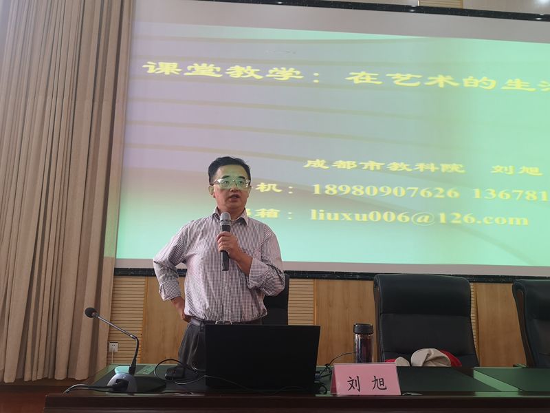 上午9点,成都市教科院教育改革发展研究所副所长刘旭为大家带来了题为《课堂教学:在艺术的生活中行走》的专题讲座。刘老师首先指出几个课堂教学中存在的问题,然后通过丰富有趣的教学实例告诉老师们新课程背景下的现代课堂教学艺术。他从教学引入艺术、教学的高潮艺术、优良教学情境的创设艺术、发挥主体作用的艺术、教学中的点拨艺术、教学中的幽默艺术和教学中的讨论艺术等七个方面,引用大量教学中的真实案例向老师们传授了“教”的方法与策略:有自己的教学目标、学习目标,善于研究教材、分析学生、研究学法;还要在教学过程中巧妙地引入艺术。期间,刘老师与老师们愉快地分享交流,他用幽默的语言、生动的事例带领大家在课堂艺术的生活中行走,现场不时欢声笑语,掌声响起。