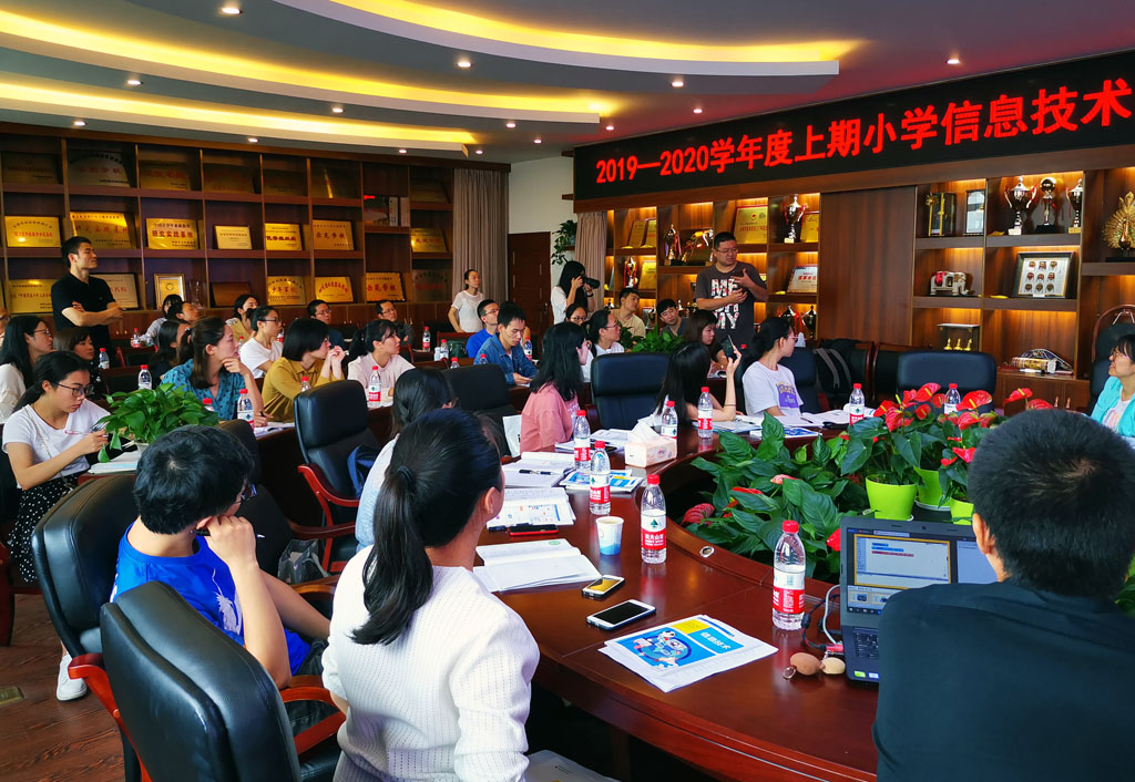 自古逢秋悲寂廖,我言秋日胜春朝。2019年9月12日这个秋高气爽的日子,全区小学信息技术学科教师齐聚一堂,围绕“理解课标、解读教材、开展新教材教学”主题,在棠湖小学三楼会议室举行了本学期的第一次研讨活动。