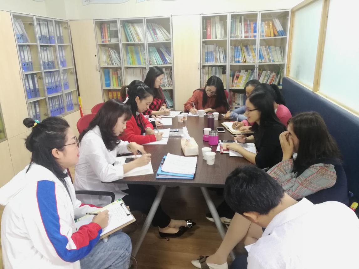 接下来,中心组一行9人来到资源中心办公室,召开了中心组工作会议。彭老师就本期的中小学特殊教育的教研、培训工作和中心组的视导、学习培训工作,以及承担省教育机制体制改革重大项目的试点工作等一一做了精心安排。最后,中心组教师分成语文和数学两个学科小组,棠湖小学李俊秀老师牵头数学组,实验小学廖永琴主任牵头语文组分别讨论了低段随读生个性化学习材料——融学单的修改要求,并做了具体的工作分工和任务布置,力争近期完成相关工作,确保十月中旬提供修改稿给普校老师使用。相信在彭老师的带领下,特殊教育教研培训在新的学年会有新的斩获,双流区融合教育将迈向一个新台阶。