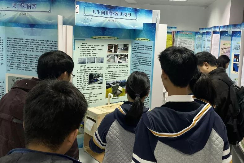 技术教育创客项目展示是采用个人或学校申报、省级教研员推荐、大会审核的方式确定参会展示项目。在这里我们不仅看到了一个个尽管不那么精致但都非常特别的作品,而且还读到了每个创作发明背后的故事。创新的魅力和价值极大地冲击着每一位通用技术人的内心。5日晚间206件学生的创客作品在图书馆1楼电子阅览室展出,引来了众多围观的老师和同学。