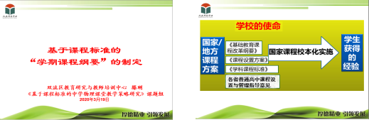 本次培训是双流区研培中心高中室物理教研员滕刚老师组织开展地并作了题为:《基于课程标准的“学期课程纲要”的制定》的专题讲座。