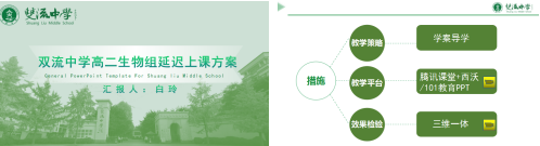 双流中学白玲老师介绍了双流中学生物备课组在线教学期间的经验与做法。他们以学案导学为教学策略,通过一备、二备和终审,精心编制学案;综合利用腾讯课堂、希沃和101教育ppt等平台,切实提升在线教学的效率。