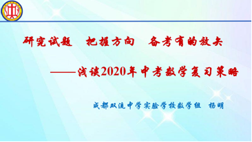 这次九年数学教研会主要有两个内容:第一板块内容由命题专家、双流中学实验学校数学组组长杨明老师从研究试题、把握方向的角度分享了“研究试题,把握方向,备考有的放矢——2020年中考数学复习策略”,第二板块内容由双流区研培中心数学教研员李志江老师分享“九年级下期数学教学的思考和建议”。