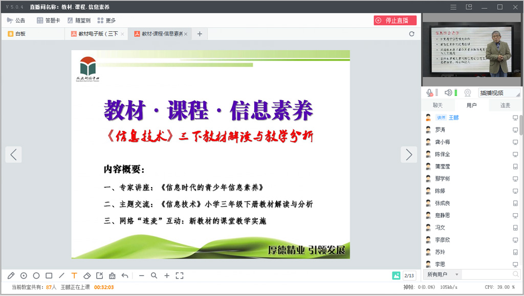 双流区小学信息技术“教材·课程·信息素养”网络直播主题培训活动