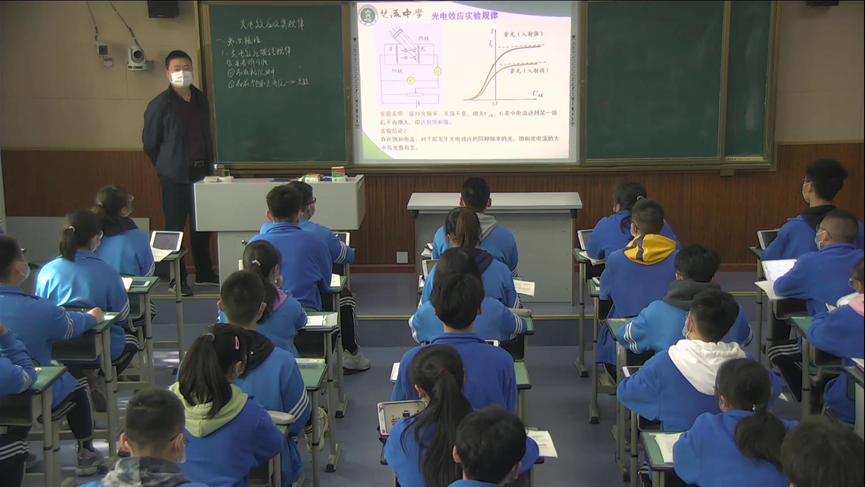 活动的第一个环节是课例展示。杜江老师献课的题目是《光电效应及其规律专题复习》,课前进行了自测诊断,课中回顾总结了光电效应实验规律、光电效应方程的应用、光电效应的图像,课后作业检测等环节,将学习目标融合进整个教学过程之中,用学习目标统领整个课堂教学。整节课杜老师妙趣横生,绘声绘色,学生积极参与,认真思考。尽管受到新冠肺炎影响,学生与老师都带着口罩上课,但完全影响不了师生之间的交流和学生的学习热情。 学习目标恰当合理,学习过程充分贯彻了以学为本、教学评一致性的理念,课堂容量大、效率高。