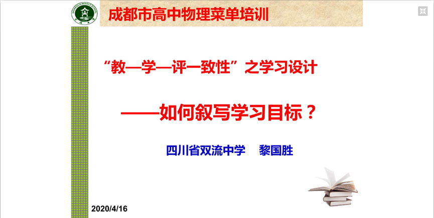 成都市高中物理菜单培训《“教学评一致性”的教学设计——目标设计》简报
