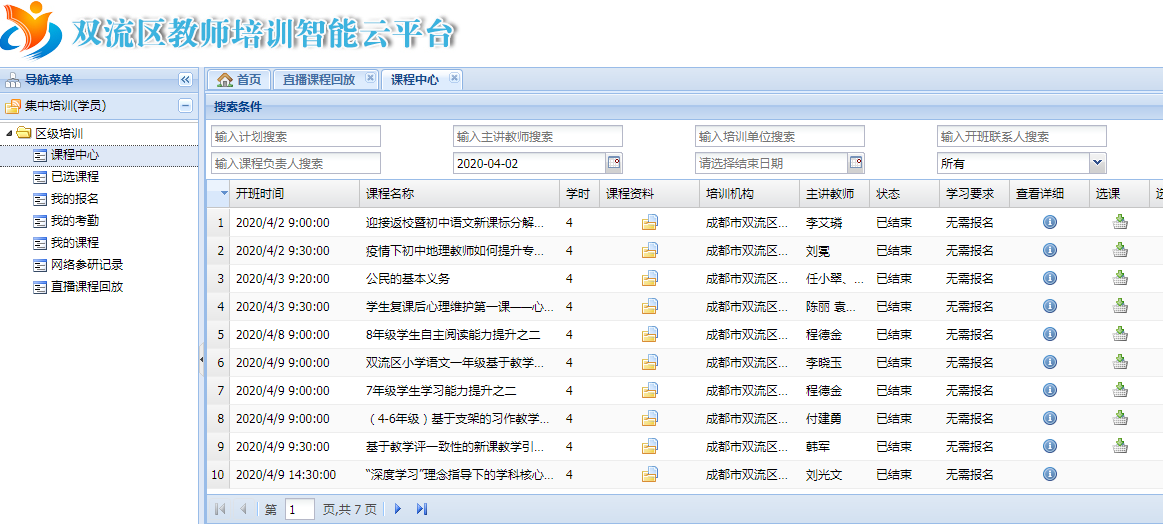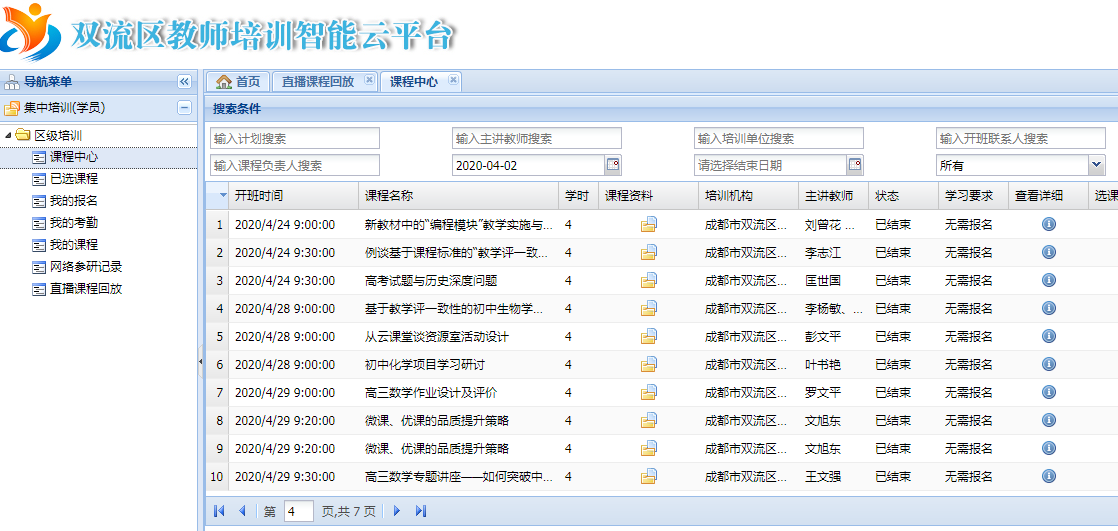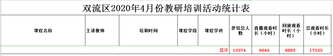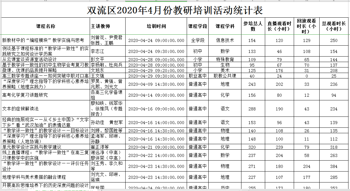2020年4月份,为了巩固疫情防控的成果,确保师生的安全,又可以更好的服务于教学一线教师,双流区的研培员们继续通过双流区教师培训智能云平台开展了线上教研培训活动。