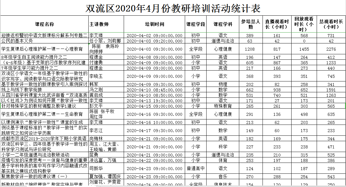 ——双流区2020年4月份开展全科全学段线上研培活动