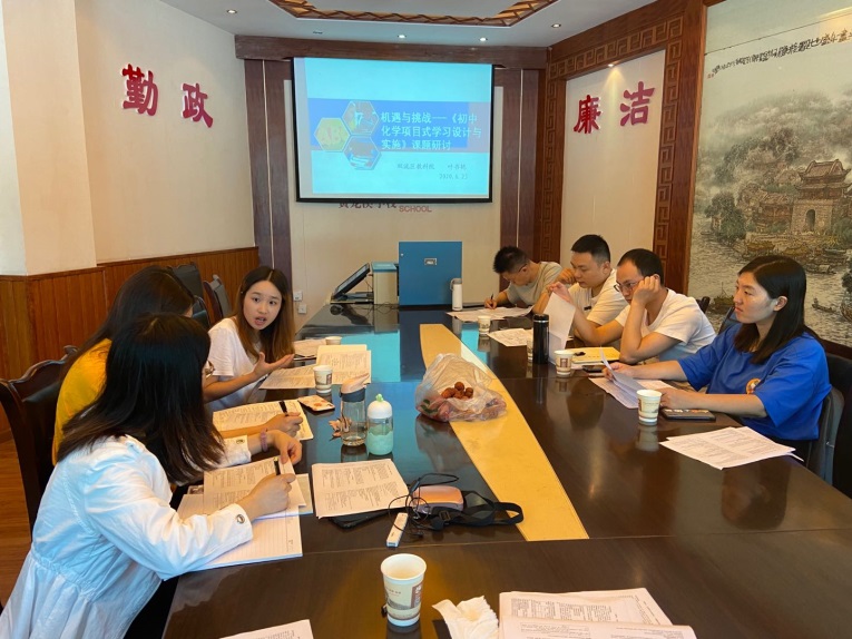 2020年6月23日初中化学项目式学习设计与实施课题组在黄龙溪学校召开了这学期的第一次线下课题讨论活动。在这特殊的学期,我们课题组一直没有停止课题的研究与推进,利用网络在线上开展多次讨论会。在前期大量的准备的基础上,开展了这次的课题讨论会。本次会议主要分为三个部分。