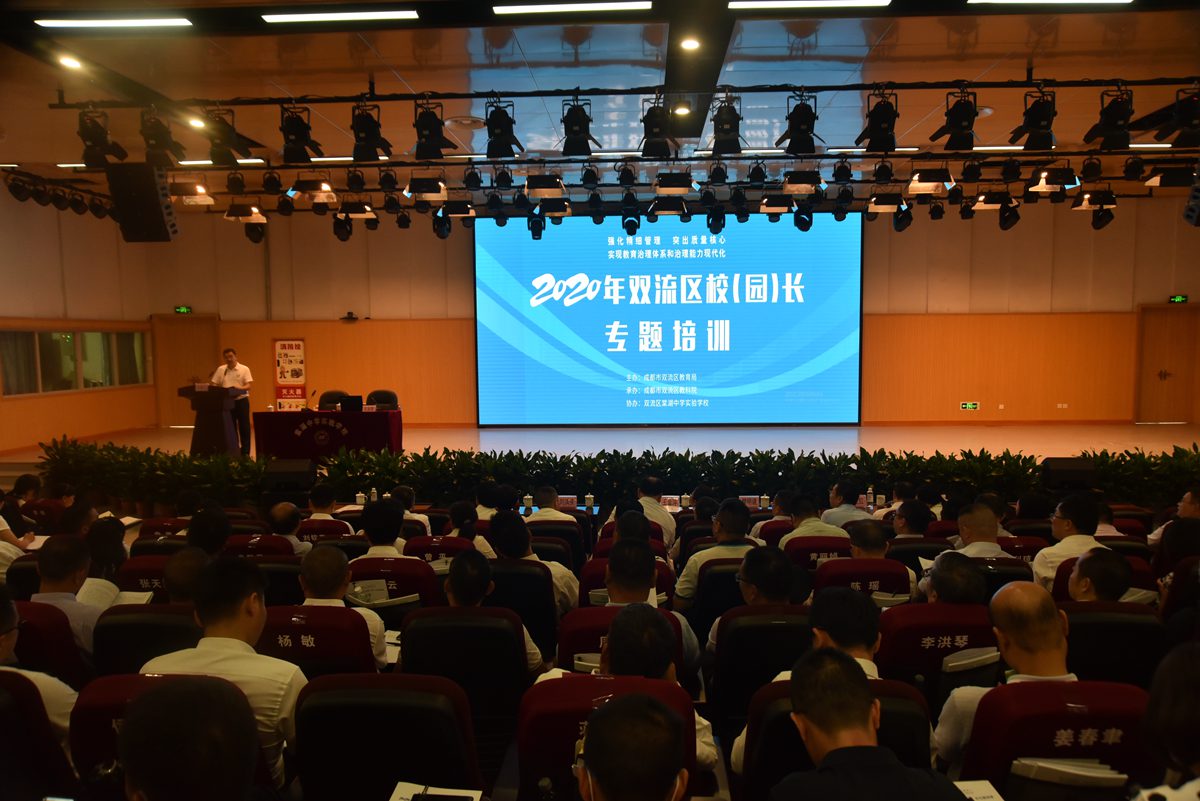 2020年8月22日至23日,2020年成都市双流区“强化精细管理,突出质量核心,实现教育治理体系治理能力现代化”校(园)长专题培训在棠湖中学实验学校成功举办。本次培训由成都市双流区教育局主办,区教育科学研究院承办,棠湖中学实验学校协办。双流区区委教育工委书记、区教育局党组书记、局长樊明建,局党组成员、副局长王金萍,局党组成员、纪检监察组组长李文红,局党组成员、副局长刘洪侠,局党组成员、机关党委书记杨婉妮,局党组成员、区教育考试中心主任杨晓芬出席了这次活动。双流区各公办、民办中小学党组织书记、校长、副校长,公办、民办幼儿园园长,各镇(街道)教育干事、成教校校长,部分培训机构负责人,校级后备干部培训班学员,区教科院各部门负责人,区教育局机关中层干部、直属单位负责人等440余人参加了此次活动。双流区教育局党组成员、副局长王金萍主持了两天的培训活动。