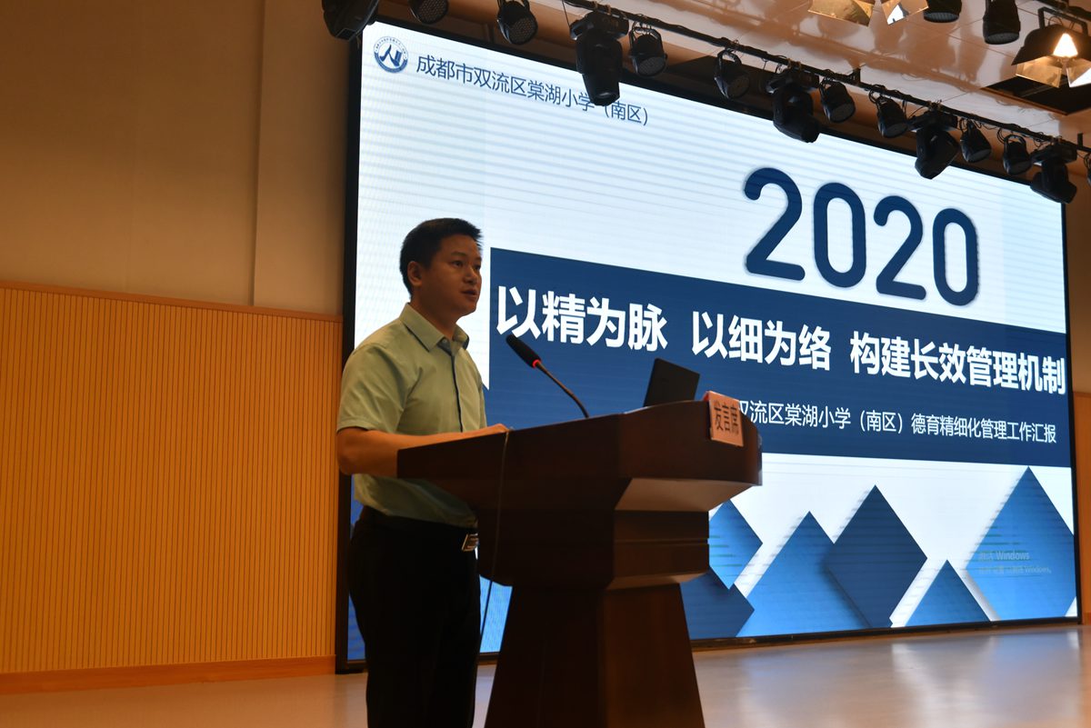 棠湖小学南区校长王云章以《以精为脉,以细为络,构建长效管理机制》为题,交流了学校德育管理精细化工作的经验。