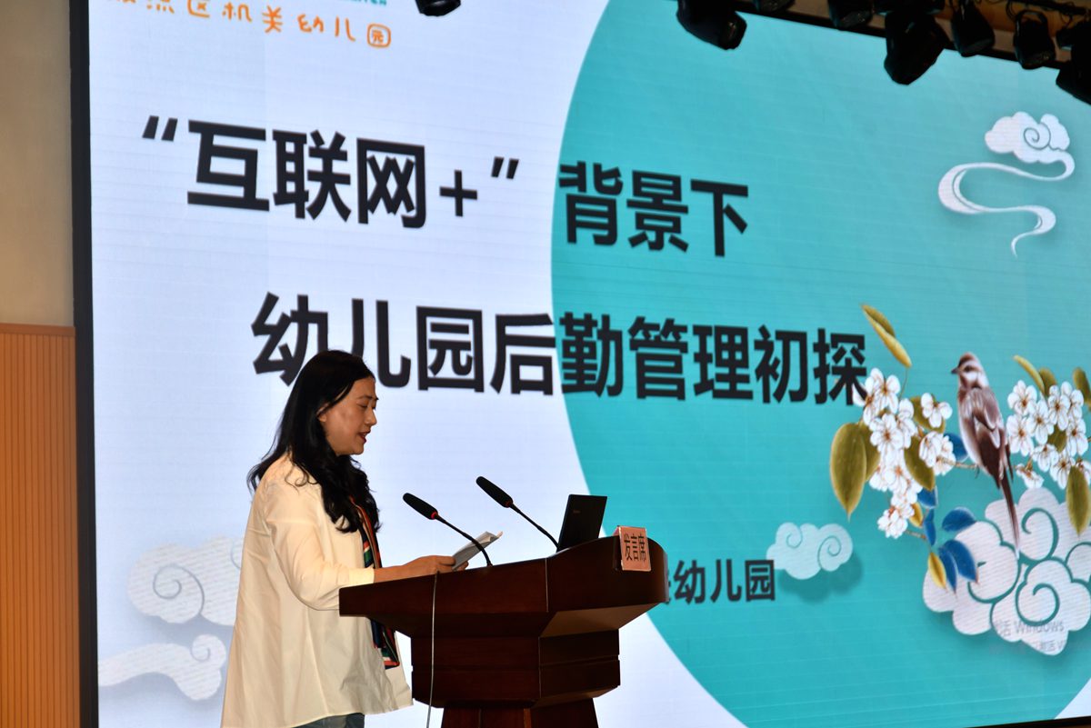 机关幼儿园园长王玉彬以《 “互联网+”背景下幼儿园后勤管理初探 》为题,交流了学校后勤管理精细化工作的经验。