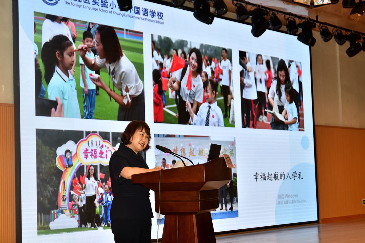 实验小学外国语学校校长周晓玲以《新体制激活团队活力,新治理铸就学校品质》为题,交流了学校行政管理精细化工作的经验。