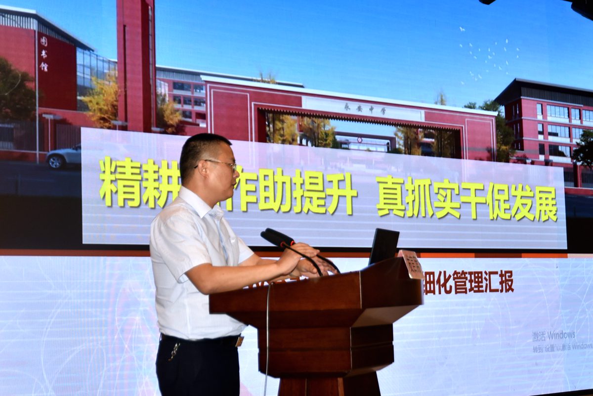 永安中学校长黄超以《精耕细作助提升,真抓实干促发展》为题,交流了学校行政管理精细化工作的经验。