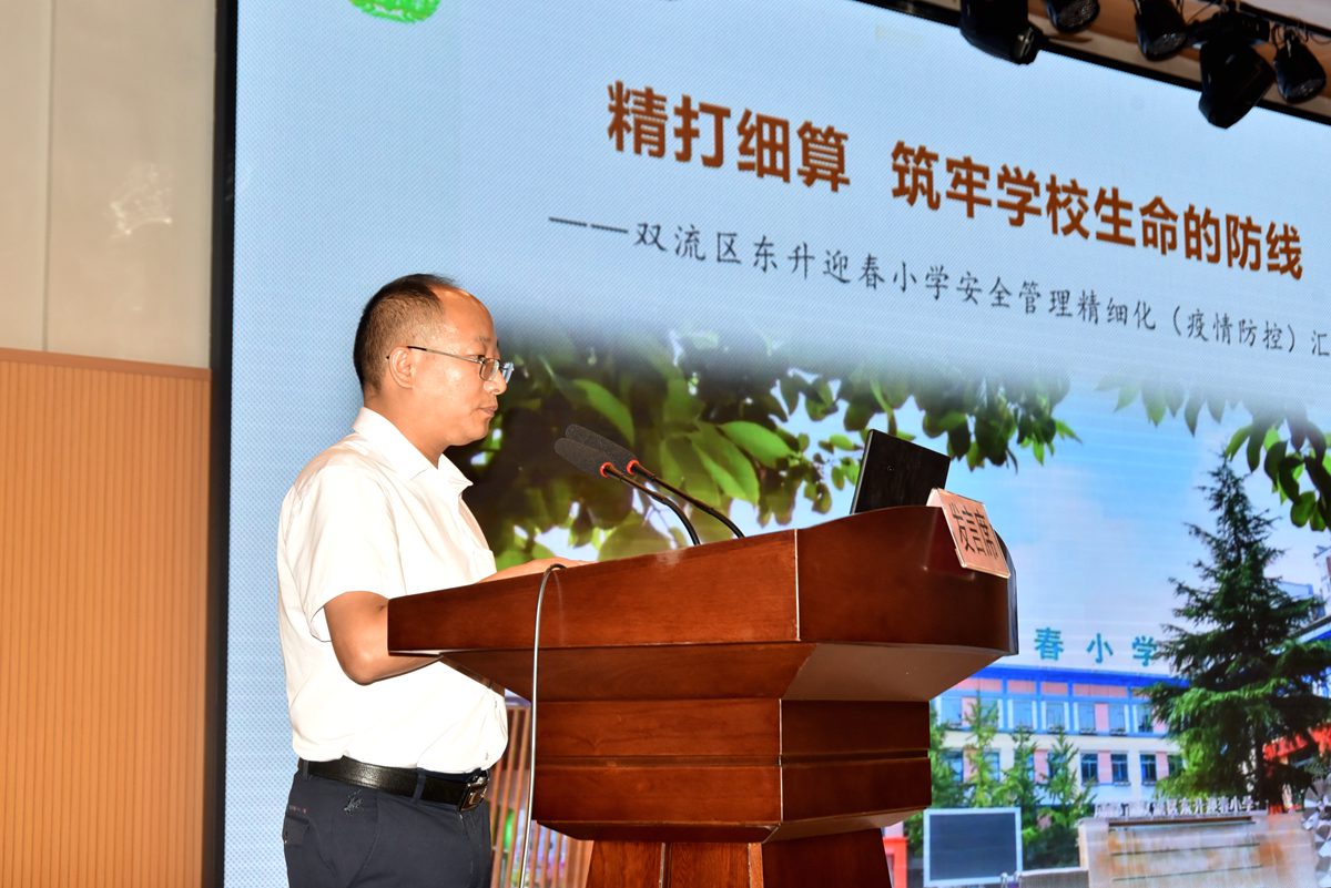 迎春小学校长万志强以《精打细算,筑牢学校生命的防线》为题,交流了学校安全管理精细化工作的经验。