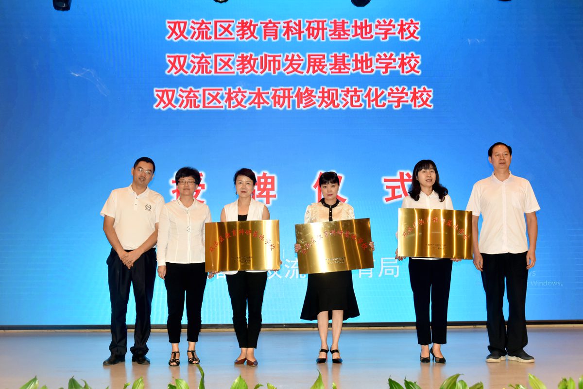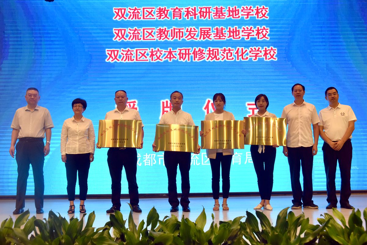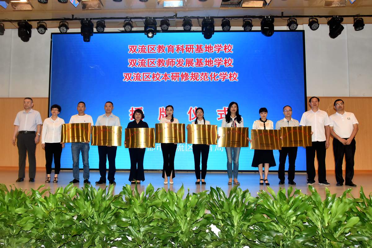 为激励全区教育系统广大干部和教师进一步提高教育科研和管理水平,发挥基地学校的引领示范作用,推动学校教育科研和校本研修持续发展,在学校自愿申请基础上,区教育局通过严格评估和审查环节,今年评选出第四批“双流区第四批教育科研基地学校”、第二批“双流区校本研修规范化学校”和第二批“双流区教师发展基地学校”。会后双流区教育局党组成员、纪检监察组组长李文红,局党组成员、副局长刘洪侠,区教育考试中心主任杨晓芬和区教育科学研究院院长邱刚田分别为相关学校授牌。