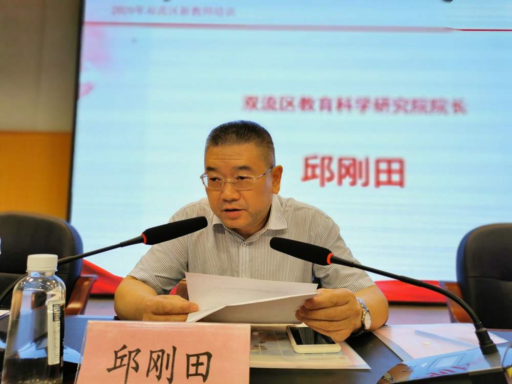 开班典礼上,邱刚田院长首先对即将走向工作岗位为双流区教育事业奉献青春、智慧和激情的全体新教师们表示了衷心的祝贺和热烈的欢迎。接着,他向新教师们详细介绍了双流深厚的历史文化和迅猛的发展趋势,对长久以来双流区在教育工作上取得的成就和荣誉做了介绍,同时就双流区教育的指导精神和发展方向做了详细解读,激励全体新教师珍惜和重视此次培训机会,快速转变角色,努力适应岗位需求,增长新知识、开阔新眼界、提炼新思想、拓宽新思路,自信地站上讲台成为一名合格的人民教师。