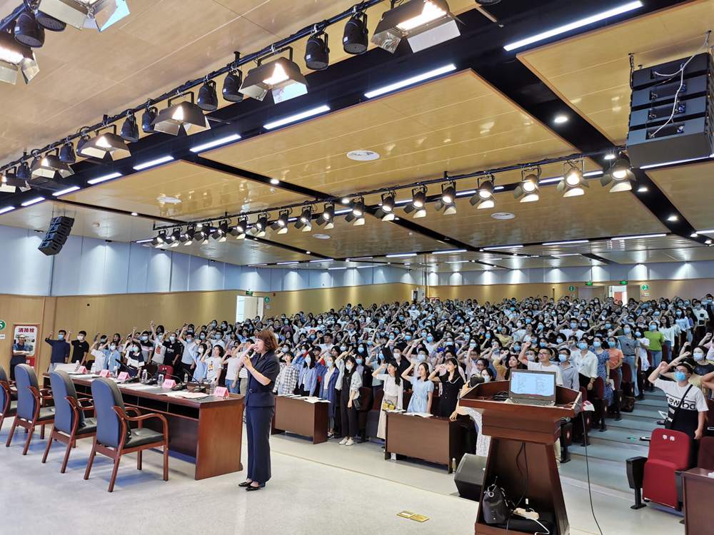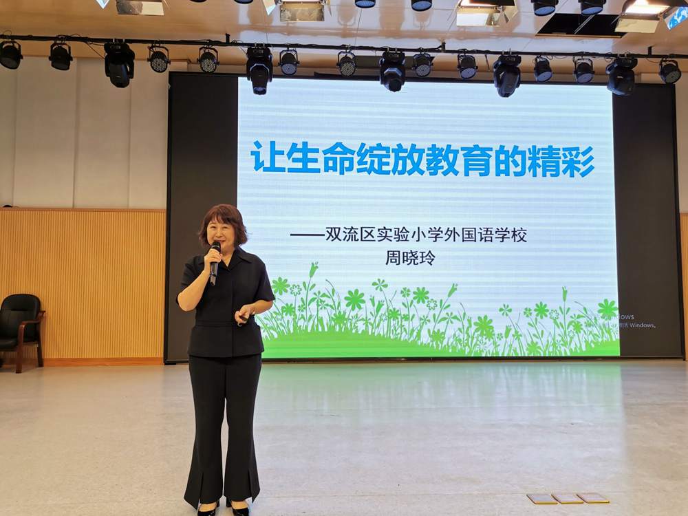 开班典礼结束后,双流区实验小学外国语学校校长、四川省特级教师、正高级教师、双流区名教师工作室导师周晓玲为新教师做了题为《让生命绽放教育的精彩》的专题讲座。周校长用“热爱”“勤奋”“研究”三个词语概括她的职业生涯发展方式,向在座的新教师倾情讲述了自己的工作经历和教育教学经验,鼓励新教师调整心态不断学习和成长。她以自身的专业发展故事为例,向老师们展示了教师成长的不二法门——以学生为中心精心备课、用心上课、勤于反思总结,同时她还希望老师们广泛阅读,培养研究精神,努力成为专家型教师。