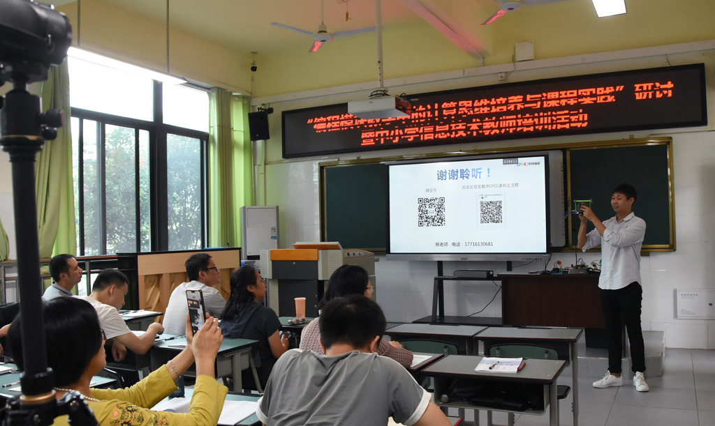 为深入推进双流区中小学“编程教育”的开展,加快落实编程课程中“计算思维”的培养,促进中小学信息技术教师的专业能力与编程模块教学质量的稳步提高;2020年9月11日,以“编程模块教学中的计算思维培养与课程实践”为主题的教学研讨与教师培训活动在双流中学实验学校附属小学顺利举行。来自全区各学校的80多名中小学信息技术教师参加了此次活动。