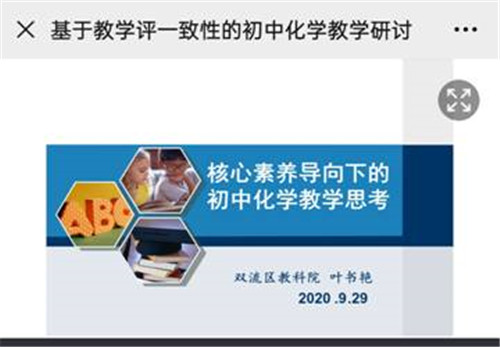 为了加强双流区初中化学教育,推动本地教师共同发展、共同提升教学评一致性课题研究工作, 9月29日上午,初中化学“基于教学评一致性的教学研讨” 活动在师培通云平台顺利举行。此次会议邀请了棠湖中学的向庆华老师和棠湖外国语的陈博老师作了经验分享交流。参会人员为双流区所有初中化学教师,会议由叶老师主持。