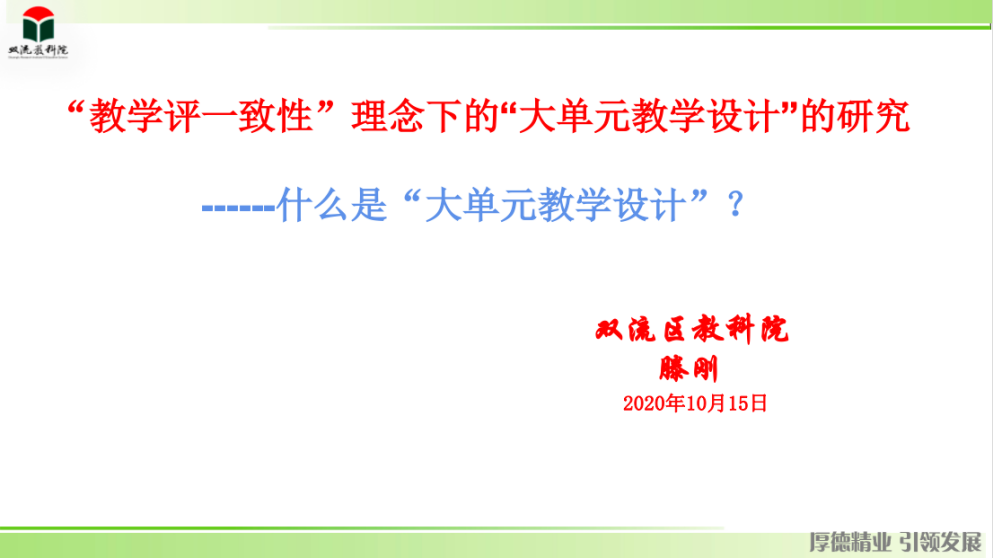 明确“大单元教学设计”,转变教学观念改进教学方式